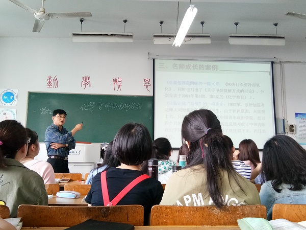 5月16日上午,闫蒙钢教授以“让教学成为研究:化学名师的成长启示”为主题,开展了一堂极具亲和力和感染力的公开课,助力师范生成长。闫蒙钢教授引经据典,用一系列的名师案例强调名师要具有反思精神,指出名师要走“学习——实践——研究”的道路,要有终身学习的理念,要有合作的意识,强调教育科研是名师的发展之本。授课中,闫蒙钢教授通过对理论知识与实际教育工作者案例的完美结合,在传授师范生知识的同时,给同学们在日后走上工作岗位提供了借鉴和目标指引。为全体师生带来了一堂有启发的公开课。