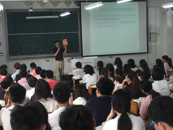 5月10日上午,周运友教授作了主题为“高分子助剂——热稳定剂”的公开课教学。课上,周运友教授紧扣“热稳定剂”这个教学重难点展开教学。在讲到难点时,周老师用简单易懂的“解拉链”比喻解释了晦涩难懂的机理。周运友教授凭借多年科研工作和在企业中积累的丰富经验,使得课程教学更具有实际应用的价值。他大胆鼓励同学们有想法就去做,有机会就去把握,有条件要积极尝试创新创业。在讲到企业新发展时,更是将自己的新发现的配方倾囊相授。同学们一致认为,周运友教授以简单易懂的语言,认真负责的态度,循循善诱的教学方法使知识传授的课堂变得丰富而生动。