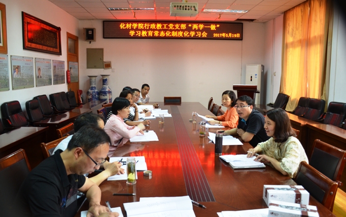 行政教工党支部在学院二楼会议室召开“两学一做”学习教育常态化制度化学习会,行政教工党支部全体党员参加了学习会,会议由支部书记苏桂琴主持。