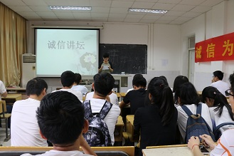 “创诚信校园,树诚信学风,做诚信学子”的诚信讲坛活动,引导学生把正确的诚信认知、自觉的诚信养成、积极的诚信实践紧密结合起来,大家从经典故事如立木取信、烽火戏诸侯更好的讲述诚信的重要性,更有来自同学身边的诚信小事例传达诚信待人,诚信待己的意义,教会大家诚信立身,诚信待人、诚信处世,做一个诚实守信的人。