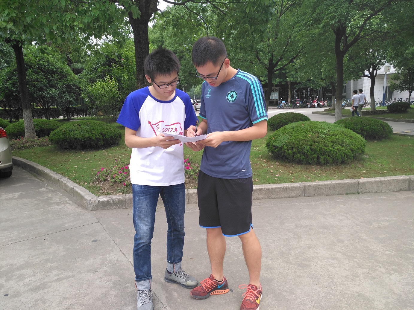 团队成员分成四小队分别前往师大新老区、皖南医学院、安徽工程大学,在青年大学生中开展“考研与就业选择”的调研。在发放问卷的过程中,队员们有礼貌的、耐心的等待同学们填写问卷,并细致的就同学们提出的问题一一作答,进行轻松愉快的交谈。顶着炎炎烈日,历时约三个小时的问卷发放,队员们高效率工作回收有效问卷千余份。成员们纷纷表示,问卷调查不仅仅是调查在校大学生的自我选择,更是引领其对未来的思考。活动尾声,队员们在美丽的校园里合影留念,脸上不约而同的灿烂笑容为此次问卷调查画上了圆满的句号。