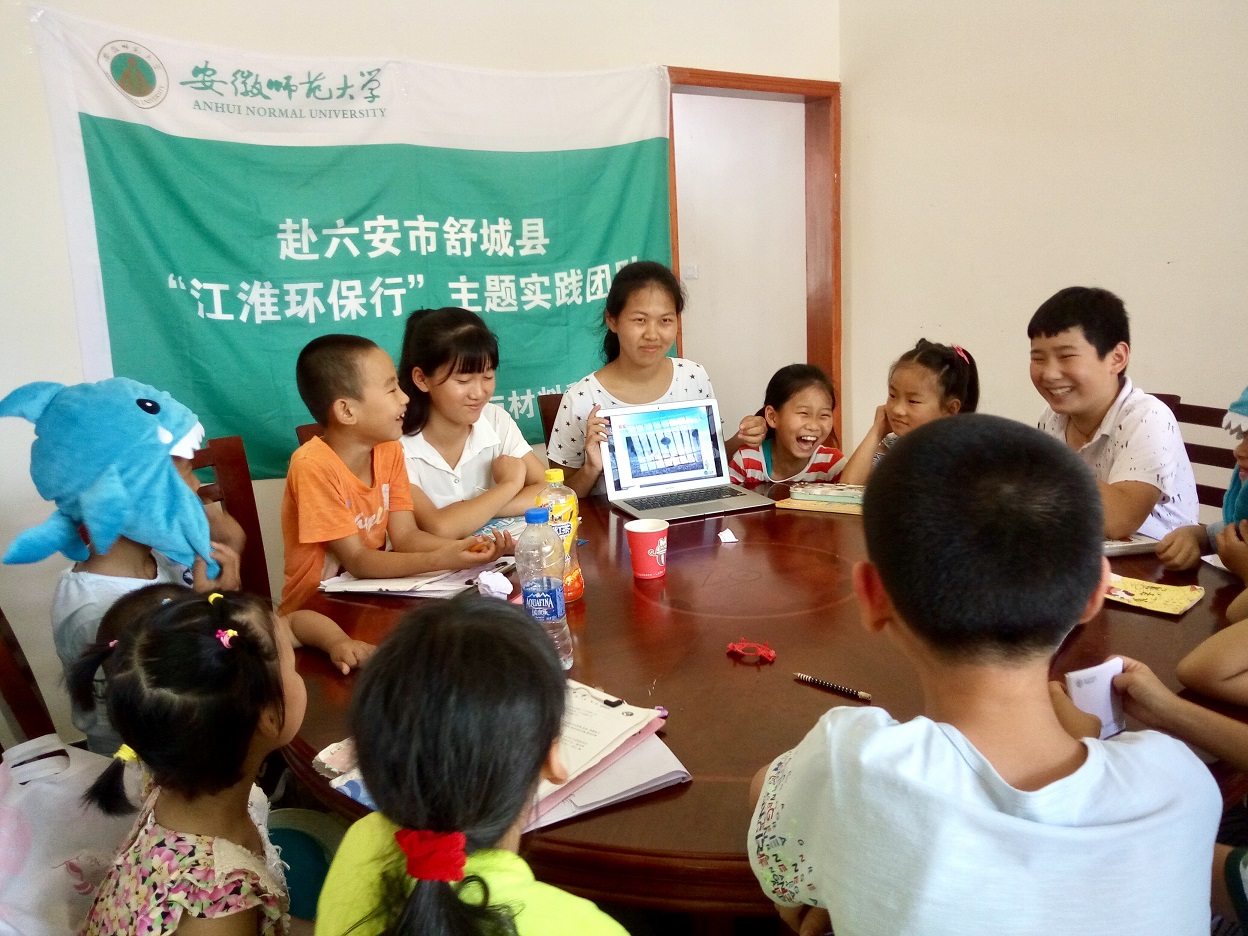 以环境保护协会为依托,组件4支团队分别奔赴六安舒城、安庆迎江区、芜湖等地继续大力开展“博爱·江淮环保行”品牌环保行动,将环保理念付诸环保行动,在实践中积蓄环保力量。在舒城,同学们走进环保局、走进生态农场,广泛调研当地生态环境现状与问题对策,成功建立明公生态农业有限公司社会实践基地。大力开展环保宣传宣教活动,把“环保教育”从娃娃抓起,成功开设“农村环保课堂”,传递绿色环保理念;针对村里留守儿童组织开展“我的家园”绿色书画大赛、创意环保歌曲大赛,激发绿色环保意识。此外,同学们积极走村访户,调研生活垃圾回收及处理情况,讲解日常环保措施,培养村民群众的绿色环保习惯。