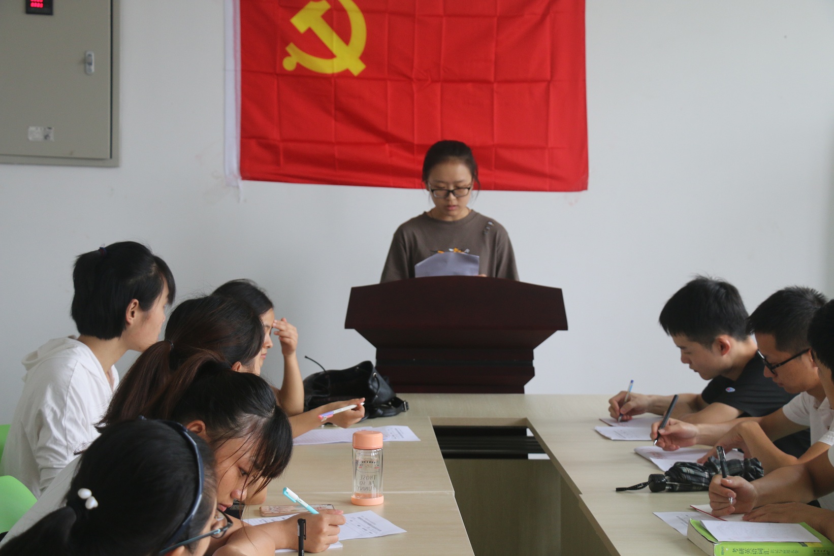 会议开始时,2015级的预备党员同志带领大家一起学习了《关于进一步规范党支部组织生活的暂行办法》。接着,蒋建伟书记带领大家深入学习了关于“讲政治、重规矩、作表率”专题警示教育专题组织生活会的通知。会上,全体党员深入学习研讨,进一步打牢思想基础;认真对照反思,查找突出问题;严肃开展批评与自我批评,沟通交流思想。会议认为,“讲政治”对于我们大学生而言就是要多关注时政,关心国家大事。“重规矩”就是要遵守党的纪律和规矩。“作表率”就是要求我们在生活学习中发挥好先锋模范作用。大家对于怎么讲政治,如何作表率展开了讨论,结合自身表现,进行了广泛的问题查找、批评与自我批评。
