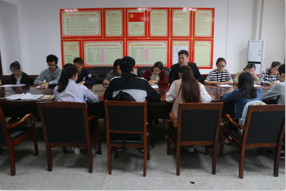 本网讯(蒋建伟)为扎实推进“两学一做”学习教育常态化、制度化,认真落实好“讲政治、重规矩、作表率”专题教育活动相关要求,9月29日,化学系本科生党支部开展“作表率,我们怎么办”专题讨论会,学院党委副书记余妍霞、校党委组织部党校办主任朱琳以及支部全体党员参加会议,会议由党支部书记蒋建伟主持。