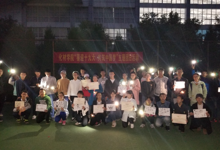 本网讯(尹雪儿 钱之苓)为庆祝党的十九大胜利召开,号召青年深入学习贯彻十九大精神,进一步引领青年不忘初心跟党走,11月11日下午,化材学院团委举办了“学习十九大,共筑中国梦”主题团日活动,来自2017级各个班级代表们以及团支委的代表们在参加了此次活动。