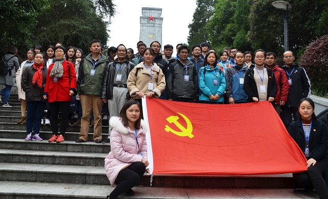 在巍峨的革命烈士纪念塔下,面对鲜艳的中国共产党党旗,学员们一起重温入党誓词。大家举起右拳,郑重宣誓:“我志愿加入中国共产党,拥护党的纲领,遵守党的章程,履行党员义务,执行党的决定,严守党的纪律,保守党的秘密,对党忠诚,积极工作,为共产主义奋斗终身,随时准备为党和人民牺牲一切,永不叛党。”铮铮誓言久久回荡,表达了学员们“不忘初心、牢记使命”的坚定政治信念。