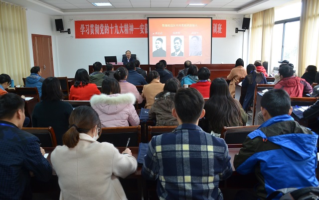 于近期举办了基层党务工作者学习贯彻党的十九大精神党性教育培训班。学院党支部书记、支部委员会委员、领导班子成员、党委委员、党委秘书等共45人参加了本次学习培训,培训由安徽金寨干部学院合作举办。