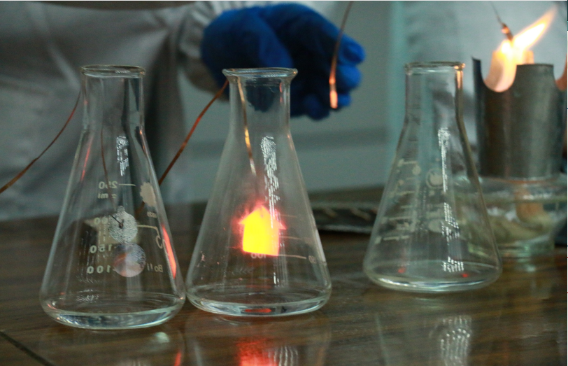 赛前的精心准备,赛场上的细致解说,选手们严谨规范的操作步骤,幽默风趣的实验讲解无不展现了我院学科专业的无穷魅力。实验《彩虹闪现》和《多彩心情,多姿实验》从颜色的变化,体现了大学生活的多姿多彩;《美丽的铜片灯》以幽默的相声形式向大家展示了铜片实验的原理和实验步骤,生动形象,寓教于乐。《点铜成金》、《甜糖焰影》用浪漫的方式,讲述了化学“怪咖”的爱情。《大象牙膏》以小故事的形式向大家展现化学的有趣。紧接着的游戏抢答环节和郭建同学带来的独唱,将赛场气氛推向高潮。最终,牛聪聪和毛鸿帅的实验《美丽的铜灯片》荣获本次大赛一等奖,实验《甜糖焰影》等获得二等奖,实验《彩虹闪现》等荣获三等奖。