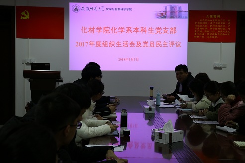 化学系本科生党支部在党员活动室召开2017年度组织生活会,进行了民主评议党员活动。支部现有34名党员,其中正式党员14名,33名党员同志出席活动,1名预备党员因工作实习履行请假手续。