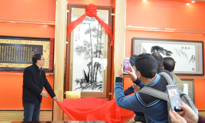 展示室举行,七七级校友向学院捐赠大型铁画一幅,“新时代、新征程”的题字寓意着学校、学院事业蓬勃发展、蒸蒸日上的喜人局面,表达了广大校友对母校的美好祝愿。随后,学院班子陪同校友参观了学院大楼,崭新的大楼、工科实训设备,让大家为学院的建设和发展感到骄傲和自豪,同时大家也表示将继续关心关注母校的发展。