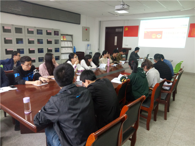 有机化学专业研究生党支部与材料及材料物理专业研究生支部在学院副院长周双六老师的带领下集中学习了2018年全国“两会”精神。