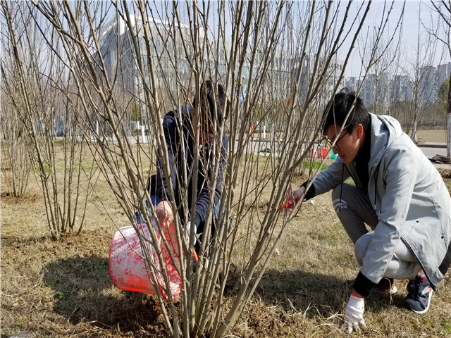 3月12日,在第40个植树节来临之际,环境保护协会成功开展了“维护化学林”爱心除草护树活动,为小树进行除草、修枝,松土,浇水等工作。同学们分工明确,默契配合,或持着镰刀,或提着水桶,或拿着铁锹,每个人都怀着充沛的干劲。经过同学们辛勤的劳动,“化学林”焕然一新。一棵棵树苗代表着植树节不变的约定,一份份汗水诠释着对环保的庄严承诺,既寄托了同学们成长成才的梦想,更表达了他们长久护树、致力环保的决心。通过“除草护树”活动,既在校园内倡导了“绿色生活,人文环保”的理念,又号召了全体同学积极行动起来,植绿、爱绿、护绿,争做绿色使者。