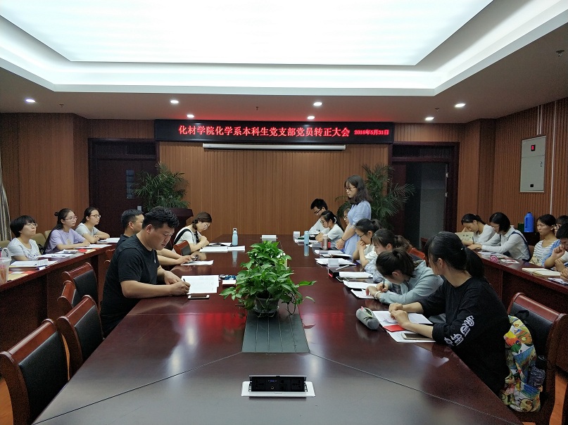 化学系本科生党支部在理科实训大楼702会议室召开预备党员转正大会。支部26名党员和预备党员介绍人参加本次会议。化学系本科生党支部书记蒋建伟老师主持会议。