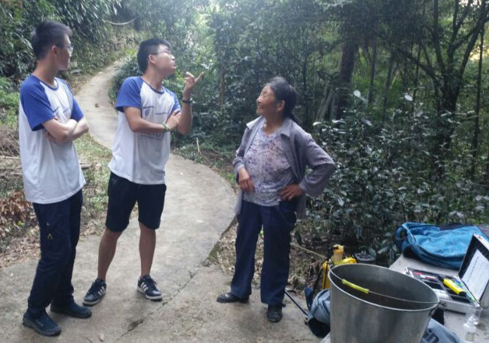 在古泉地区检测时恰好遇见前来打水的当地居民。就古泉的情况,队员与其进行了深入攀谈。该居民介绍了古井的详细情况。该泉泉水冬暖夏凉,水质清澈,入口甘甜。“我可以活到80岁大部分都是因为长期喝井水”该居民这么说道。