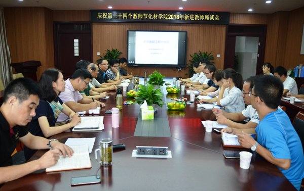 党委和工会在理科大楼702室召开2018年新入职教职工座谈会。学院领导班子全体成员、学院各位秘书、院关工委教师代表以及2018年新入职教职工参加了座谈会,会议由院党委书记汪俊武主持。