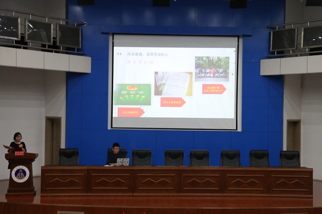 于敬文图书馆报告厅召开了2017-2018学年先进班集体评选汇报会,院党委副书记余妍霞及各年级辅导员代表出席担任评委, 2018级近300名新生聆听了本次汇报会,会议由院团委副书记王国良主持。