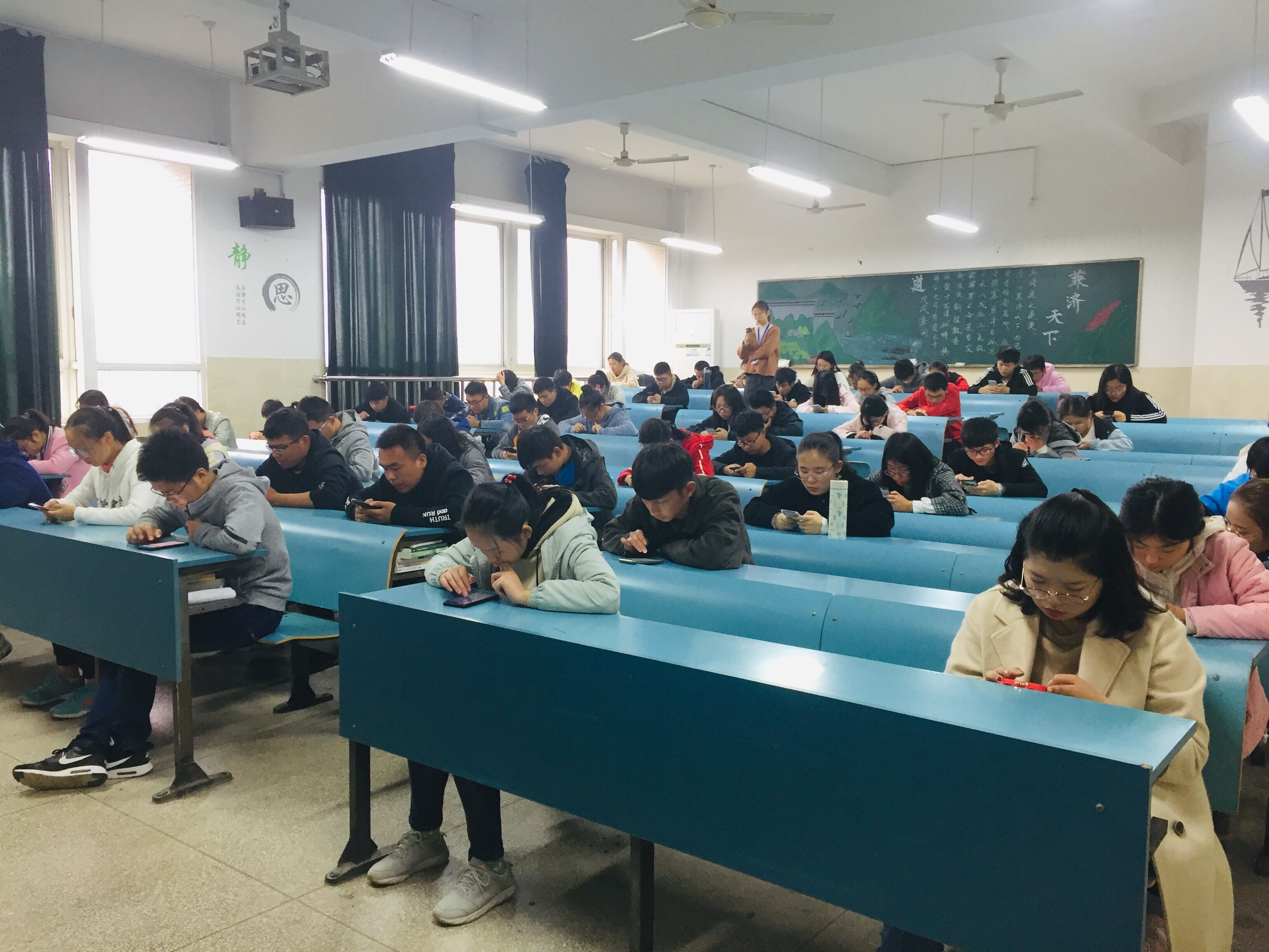 2018级新生校纪校规考试于行知楼一号楼顺利进行。此次校考与往年不同,往年的纸质版试卷变成了“易班”在线答题,虽使用手机答题,但在学院的统一领导规划、新生辅导员的监督、学生会的悉心准备下整个考试过程井然有序,无任何违纪现象发生。