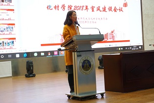 关于表彰2017-2018学年优秀寝室的决定》,结合各文明寝室标兵、文明寝室宿舍照片的PPt展示,充分的展示了学院文明寝室的风采,起到了良好的导向作用。随后,文明寝室标兵代表——原42#204寝室长刘安琪上台分享了室风建设的经验,她简要介绍了寝室在安全、卫生、学风方面的举措,并展示了寝室建设的各项成果,为各寝室提供了良好的建设模板。学生会相关负责人也分别解读了自律寝室活动方案、宣读了首届试点“自律寝室”名单,为自律寝室的推广做了良好的铺垫。最后,院党委副书记余妍霞进行了总结发言,余书记结合查寝实例对全体同学提出要求,她希望全体寝室向文明寝室看齐,并期望自律寝室能够顺利通过考验,为全体同学树立良好榜样。
