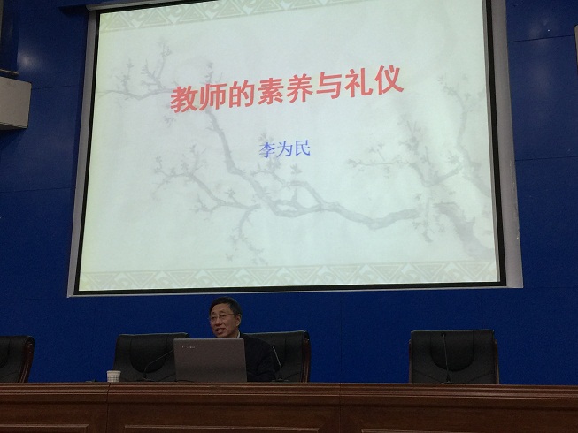 李为民校长做了题为“教师的道德修养与礼仪”专场报告。李校长的报告分成两个部分,首先,李校长从爱岗敬业、诚实守信及宽厚善良三个视角,结合具体生活中的案例对教师的道德修养进行了阐述。随后,李校长又结合自身多年教学经历和校长教学管理经验,从仪容仪表规范、言谈举止得体和待人接物有礼三个方面对教师的文明礼仪进行了举例分析。报告内容深入浅出,蕴含哲理,让在场师生深受启发。