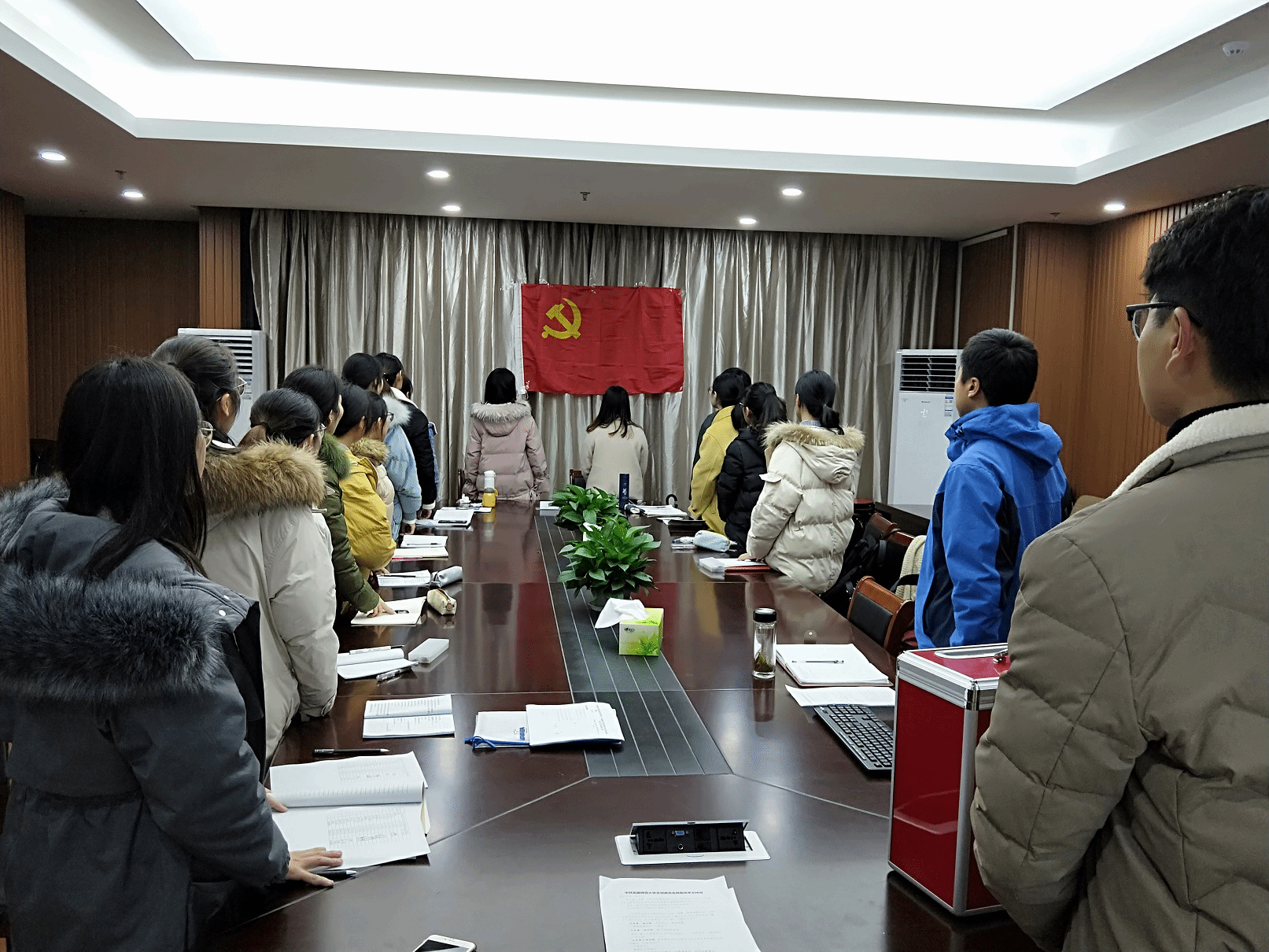会议伊始,全体起立奏唱国歌,随后,上届支部书记袁青兵老师对上一年度党建工作进行总结,并指出了支部现在存在的问题以及给出了相应的建议。袁青兵老师对支部提出了两点希望:一、加强支部宣传力度,强调组织生活的重要性,增强支部的凝聚力加强理论基础知识的学习,提高自身的思想道德修养;二、更加切实有效地发挥先锋模范作用,履行学生党员应尽的责任和义务,党员之间相互学习,共同进步。