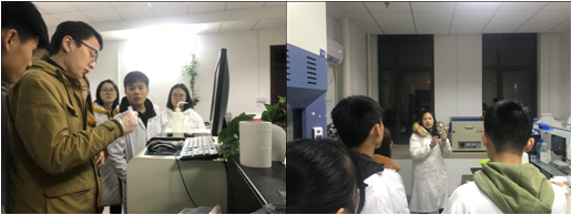2018年12月6日晚,17化学英才班的同学们来到理科大楼进行实验室参观。班级分为两个小组依次按照原计划的路线进行参观,共参观了王正华老师课题组,耿保友老师课题组,黄家锐老师课题组,高峰老师课题组,朱昌青老师课题组,宇海银老师课题组,章青老师课题组,柴卓老师实验室,郝二宏焦莉娟老师实验室共10个实验室,每个实验室都有一位党员同志讲解,他们热情且很有耐心地为本科生们介绍各种仪器设备的使用,分析当前实验室的研究课题,同学们也拿出了准备的问题向学长学姐询问,气氛十分热烈。尤其在柴卓老师实验室,杨培俊同志向本科生们娓娓道来,并让本科生们亲自动手完成一些步骤,近距离地体验有机化学的奥秘。