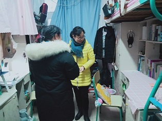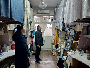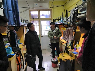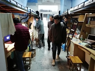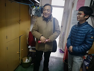 此外,领导老师们亲切地询问同学们的寒假学习及生活情况。党委书记汪俊武和副书记余妍霞在走访毕业生寝室时,耐心地询问了毕业班学生考研初试情况及就业规划,并鼓励同学们早做策划、早做准备,全力以赴解决就业问题。走访其他年级的寝室时,高峰院长同老师们询问了同学们在学习、生活中遇到的难题,并提出要求,期望同学们尽快调整心态,全身心投入新学期的学习生活,做好发展规划。