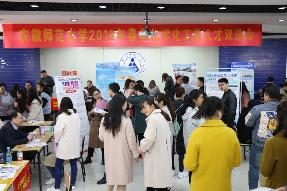 毕业生。用人单位在交流中也对学院毕业生的综合能力和专业素养给予了高度的肯定与评价。安徽省化工研究院的负责人说:“作为化工研究行业,我们非常期待能够吸引更多的化学化工专业人才进入到研究院,在研究院这个平台上继续让专业的人做专业的事,从而实现更大的人才效益”。融汇化工公司招聘主管韩数群女士说:“与学业成绩和工作经验相比,我们更看重毕业生扎根一线勤奋进取的职业态度和精神。他们身上的活力、闯劲,都是公司选拔人才非常看重的品质。”本次行业人才双选会吸引了全校多个学院相关专业的同学到现场,为用人单位和求职学生搭建了双向交流选择的良好平台,形成了用人单位、学生、学院多赢的格局,取得了圆满成功,反响热烈。