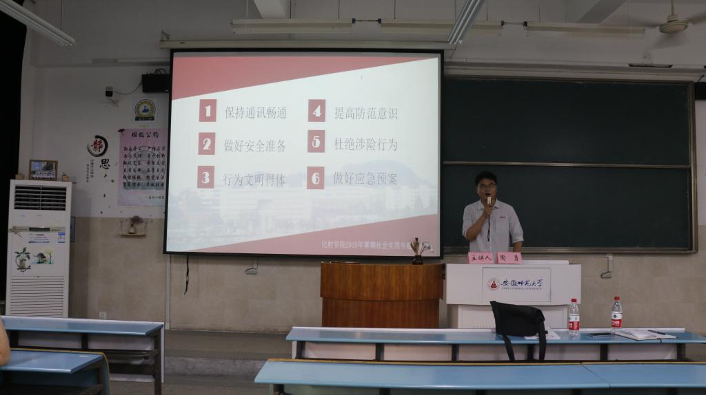 随后,院团委负责人陶勇老师对暑期社会实践的安全问题做了培训和指导,并对安全准则和团队规范条例作出相关解读,他强调各团队要有危机意识,关注可能存在的安全隐患,要提前做好应对措施。同时,实践团队不仅代表团队,更是代表着学院,要穿着得体,举止文明,体现当代大学生的礼仪修养。最后,余妍霞书记对实践时间做了强调,要求“早点名,晚汇报”,并要对活动有总结有规划。与此同时,余书记对团队报销和照片拍摄方面做了强调和解读,指出活动要保持节约原则,本着艰苦朴素的精神参与实践!