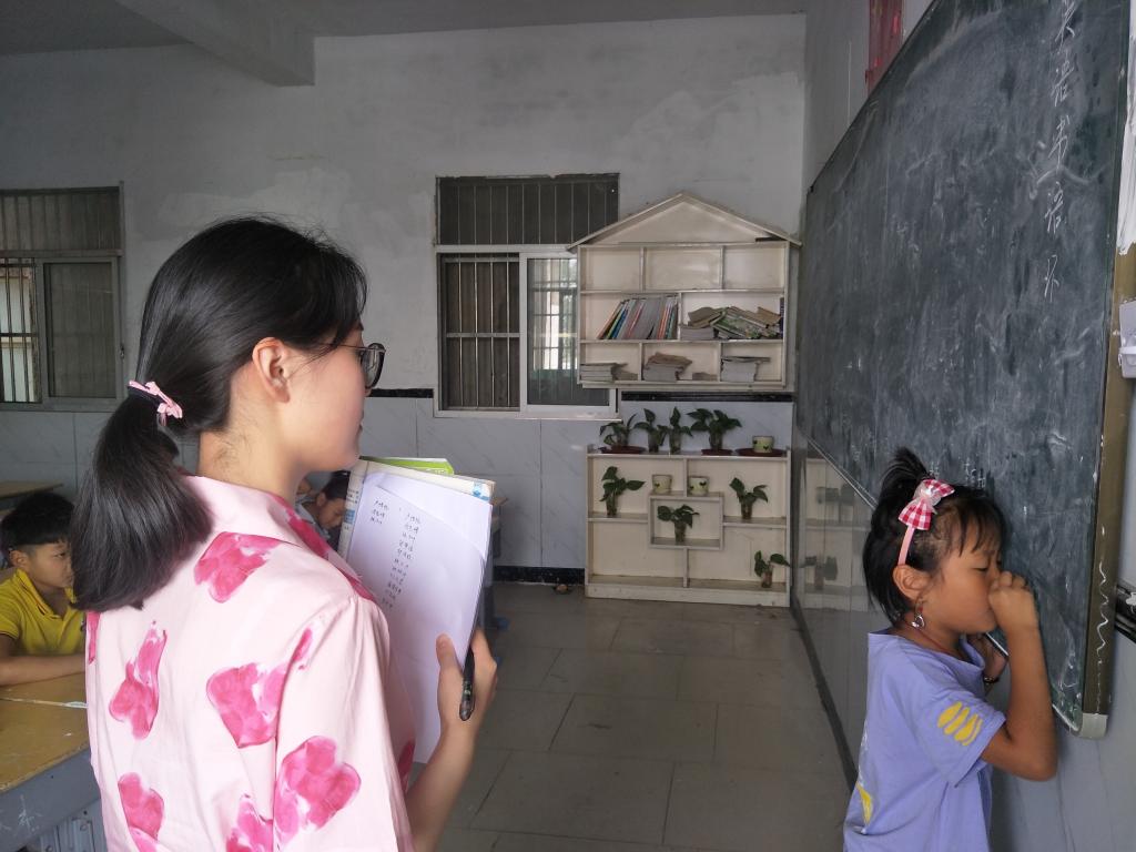 短暂的午休过后,我们又开始了下午的教学。下午的课程主要以英语、语文和作业辅导为主。一二年级的学生们抄写了汉字。三四年级的学生们学习了简单的英语,五六年级的学生们学习了古诗,并且背诵默写。看着同学们积极的回答问题,队员们都非常开心,这当然也得益于队员们辛苦的付出和辛勤的汗水。