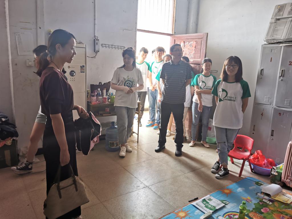 党委书记汪俊武、党委副书记余妍霞、团委负责人陶勇一行来到位于阜阳市阜南县老关村拓新小学实地走访慰问在此开展义务支教实践活动的同学们。院领导们依次走访了实践学校的食堂、宿舍、教室,并就实践团队当前活动开展情况、队员生活情况等与团队队长进行了深入交流。由于实践基地位置较为偏远,实践基地多为农村留守儿童,且周边淮河水系环绕,院领导多次提醒队员们在开展实践活动的同时还需密切关注自身与学生们的人身安全,在传授文化知识的同学深入开展安全知识普及教育,在将教学与实践的结合融入日常。