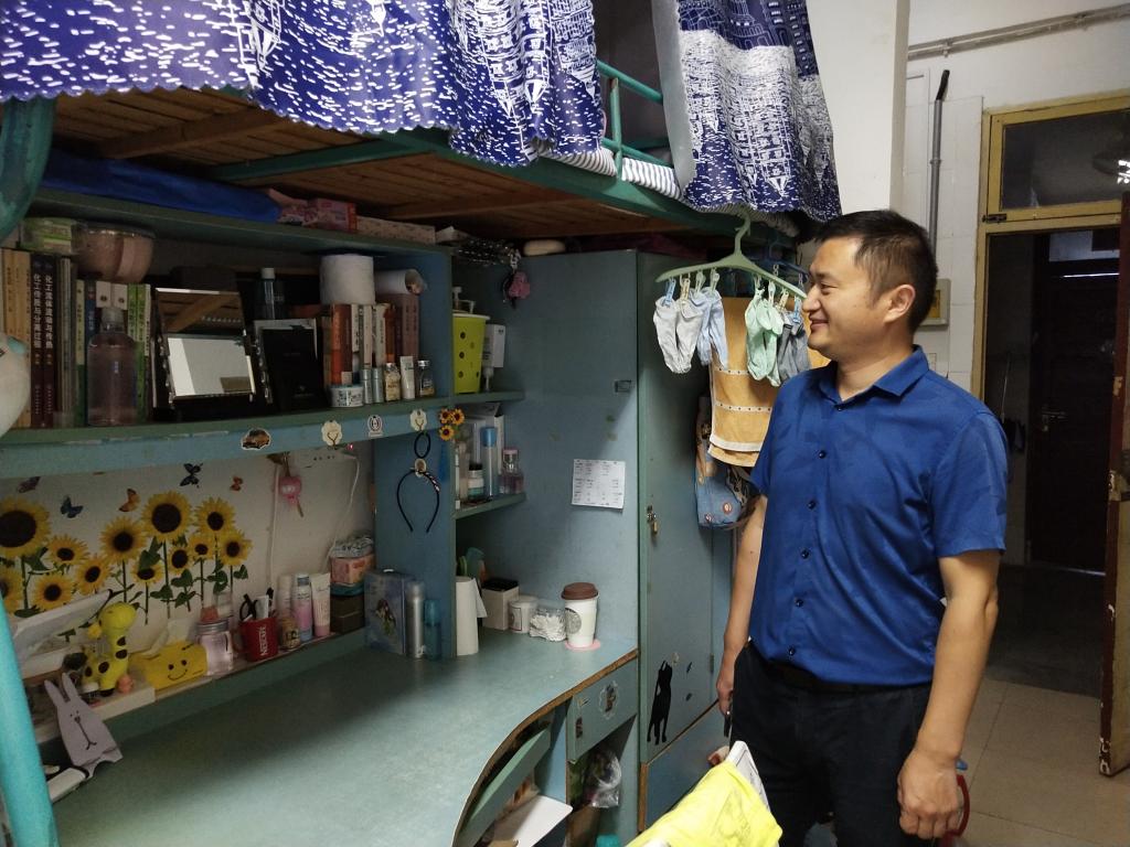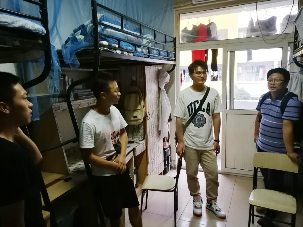 吴磊)新学期,新气象,9月5日下午学院党政领导班子、各系主任、全体专兼职辅导员分组深入全体学生宿舍,了解学生新学期思想动态,将关怀送到“家”。