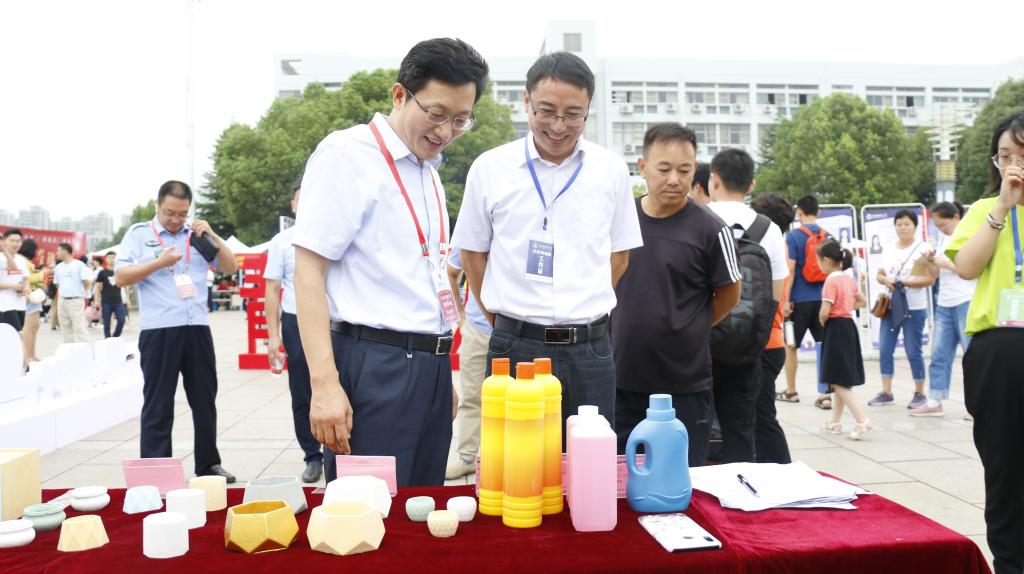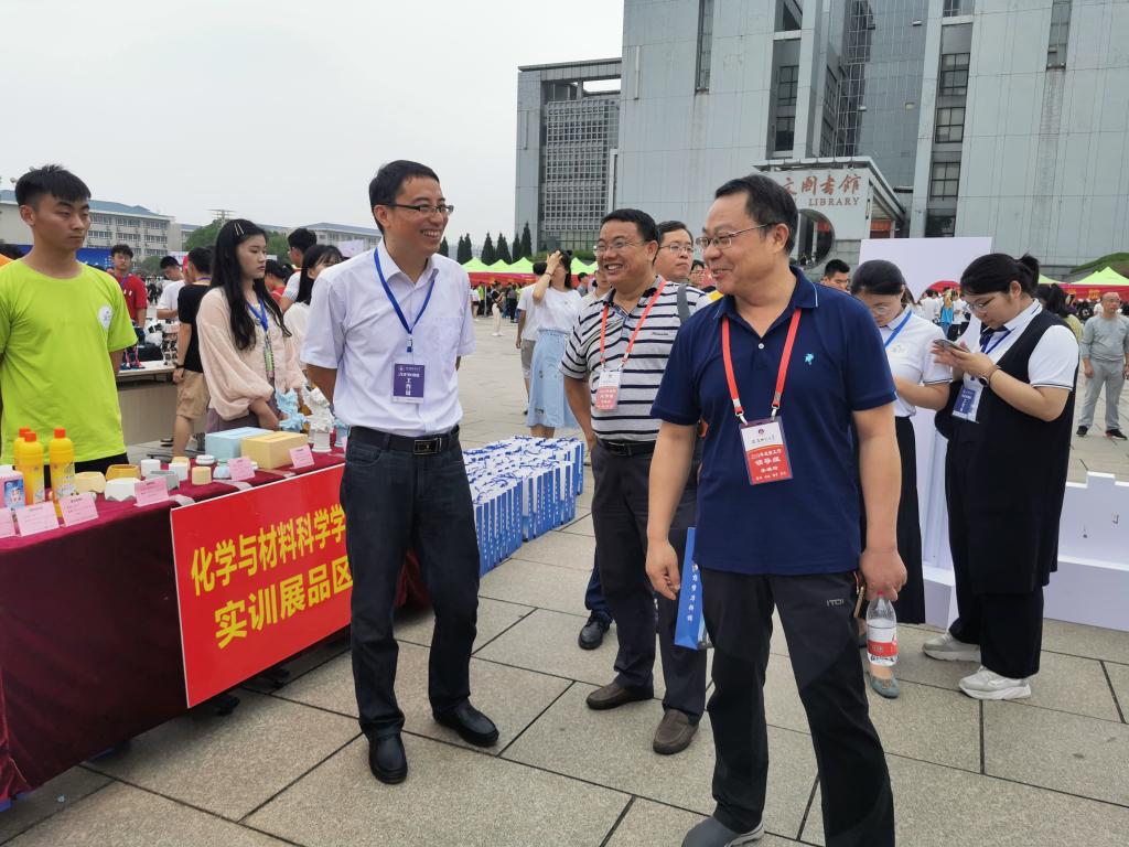 精心打造三大迎新品牌,努力为2019级新生上好大学“第一课”。一是实训作品展,环保笔筒、流香洗衣液、强力洗洁精等一系列自制产品出现在展示桌上,桌侧整齐摆放数百份礼品袋,内装环保笔筒和流香洗衣液各一份。这是2016级同学在老师的指导下,为2019级新生送上的入学第一份礼物,体现出学院老师、同学对新生的殷切关怀。二是“梦想绽放在创新化材”心愿墙,写下心中小小愿望,遥寄未来的自己。三是(展板内容)“AgZn”“青春”“梦想”等字模激励着新生不忘初心、奋发图强,学生、家长纷纷合影留念。