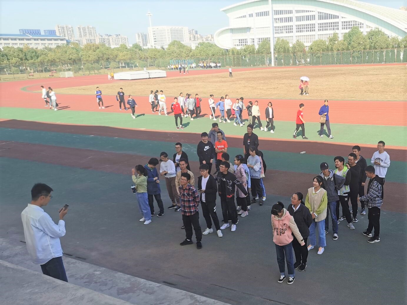 在校内,各新生班级踊跃开展“青春三走”活动,目的在于号召广大同学,走下网络,走出宿舍,走向操场,加强体育锻炼,在繁重的学习之余组织课外体育活动,活动内容以团队协作为主,考验的是班级成员间的相互配合,在集体协作中提升班级凝聚力。