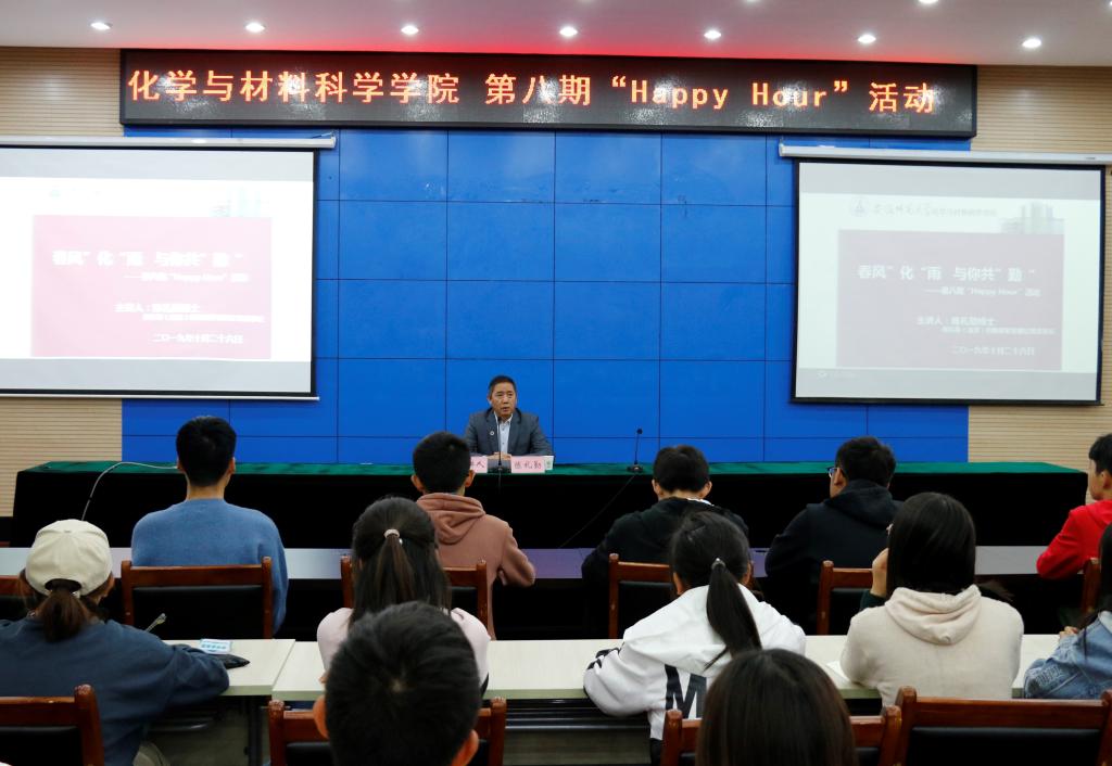 会议中心第三报告厅举行了第八期“Happy Hour”活动——“春风化‘雨’,与你共‘勤’”。本次活动邀请了我院知名校友,梯尔希(南京)药物研发有限公司的董事长陈礼勤博士来主讲,活动由党委副书记余妍霞主持,300多名学生代表齐聚一堂,陈博士以座谈会的形式与我院学生畅谈青春理想。