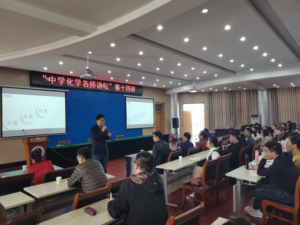 副院长张小俊教授主持,2017级化学师范专业学生及化学教学论专业的教师和研究生参加了此次报告会。