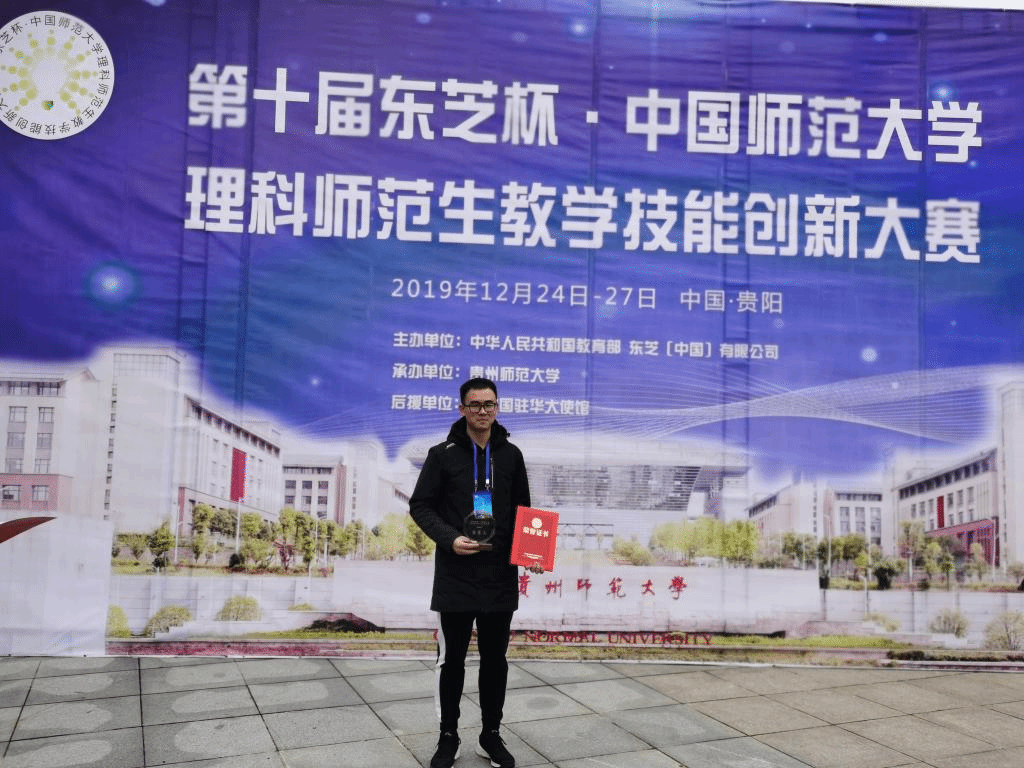 周冬冬/王磊)12月24日~27日,由教育部和东芝(中国)有限公司主办的第十届东芝杯•中国师范大学理科师范生教学技能创新大赛在贵州师范大学举行,来自全国50所师范大学的145名师范生分数学、物理、化学三组进行竞赛,每组设一等奖1名,二等奖3名,三等奖6名。决赛设有教案设计、即席演讲、模拟授课、现场提问四个环节。经过激烈角逐,我院2017级师范生王磊同学斩获得化学组三等奖,创造了我院学生在此项赛事中的最好成绩,实现色情视频