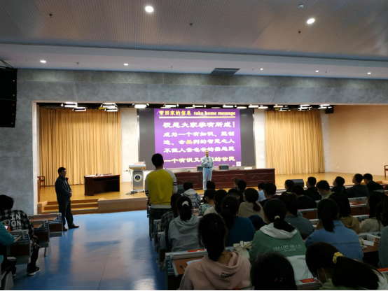 院长高峰、党委副书记余妍霞、化学工程与工艺系主任罗时忠等教师参加活动,新生辅导员及全体2020级新生现场聆听了报告,报告会由院长高峰主持。