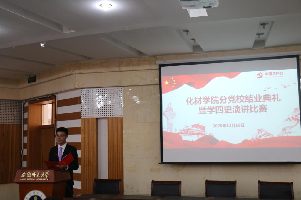 在庄严的国歌声中,结业典礼正式拉开序幕。首先,培训班班主任陈静对本学期党校工作进行总结,宣读了2020年度分党校优秀学员名单,并由领导老师为优秀学员颁发证书。随后,进行了党校培训班的成果展示——“学四史 守初心 担使命”演讲比赛。本次比赛经过前期初选,共推荐10名选手参加决赛,这10名决赛选手中,有刚发展的预备党员、有入党积极分子,也有进校后刚递交入党申请书的大一新生。比赛中,参赛选手用声情并茂的演讲,讲述了党和国家在发展中生动感人的事例,将典型人物和鲜活故事以“身边人讲述身边事”的形式娓娓道来。一个个鲜活的场景,一幅幅感人的画面,一次次深刻的思想感悟,让观众深深地为之触动,掌声不断。会后,学院领导前往学生宿舍,为党员寝室挂牌、亮身份,叮嘱党员们要做好表率,处处发挥先锋模范作用。