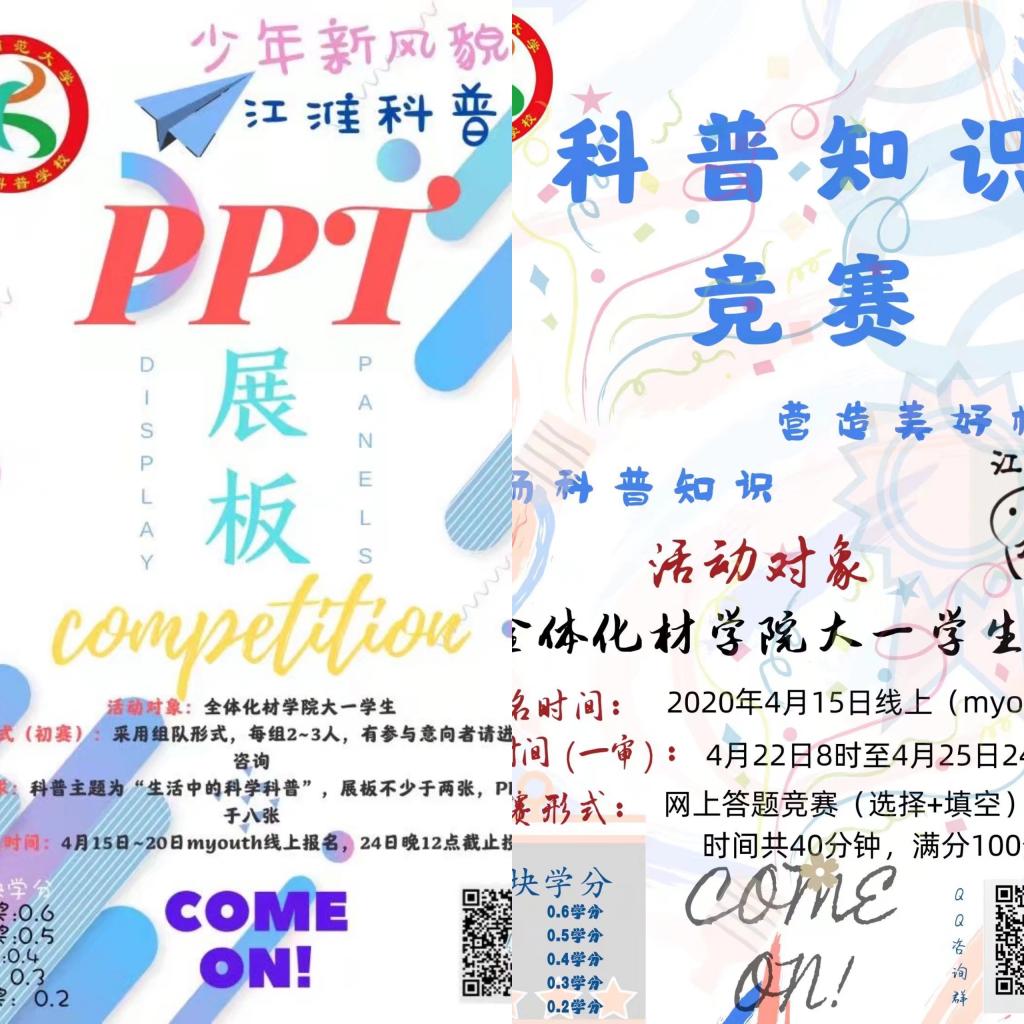 下半年,由江淮科普学校主办的“科普化材”原创科普宣讲大赛于12月中旬顺利举办,各组参赛选手以原创科普类课件和展板宣讲的形式进行科普讲课,以科普为主题,让同学们了解更多生活中常见的科普知识。