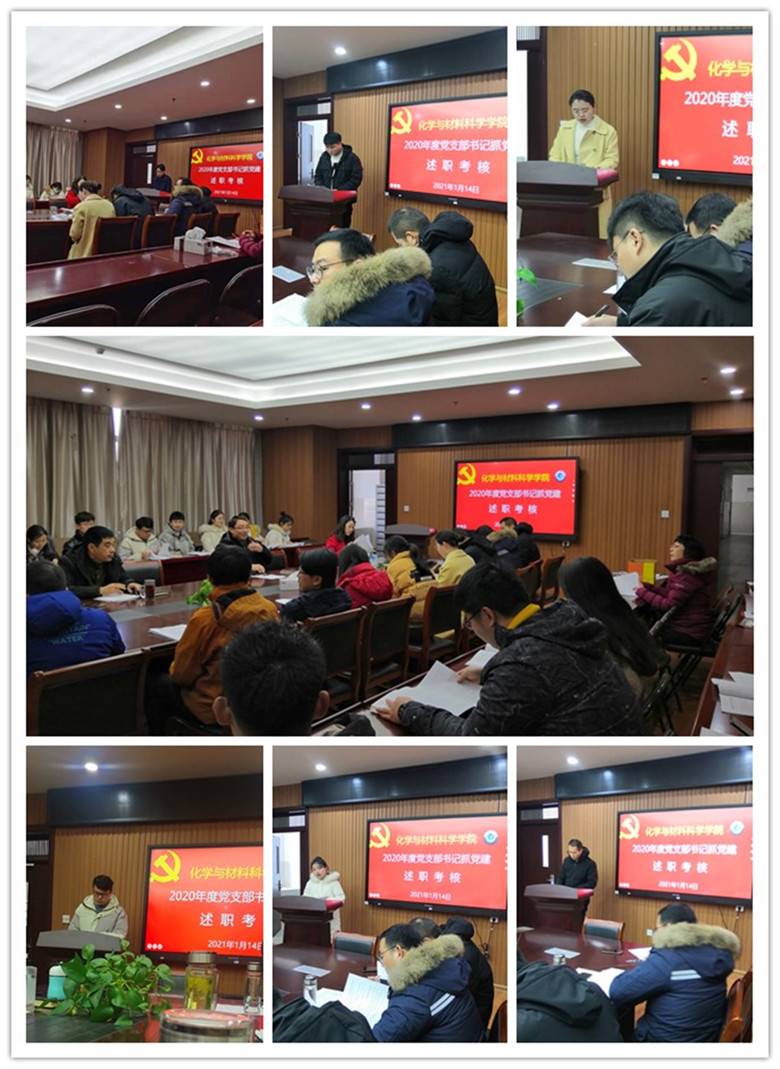 会上,17位党支部书记分别以不同形式进行了汇报,其中6位党支部书记现场述职,11位党支部书记进行书面述职。述职汇报按照学校《关于开展2020年度学校基层党组织书记抓党的建设述职评议考核工作的通知》要求,重点围绕深入学习贯彻习近平新时代中国特色社会主义思想,认真贯彻落实习近平总书记关于教育的重要论述,深入学习贯彻习近平总书记考察安徽重要讲话指示精神,学习贯彻党的十九届四中、五中全会精神等。述职考核突出党支部建设,重点考核党支部履行直接教育党员、管理党员、监督党员和组织群众、宣传群众、凝聚群众、服务群众职责的情况。从政治建设、思想建设、组织建设、作风建设、纪律建设、作用发挥等方面;从服务中心大局、对标争先、争创“样板支部”等方面;从发挥党支部战斗堡垒作用和党员先锋模范作用等方面的履职情况。对照基层党支部建设标准,紧扣重点内容,把自己摆进去,总结一年来所开展的重要工作、取得的成绩、存在的不足以及支部今后工作打算等。党支部书记通过汇报相互学习借鉴,交流了经验,启迪了思路,拓宽了视野。