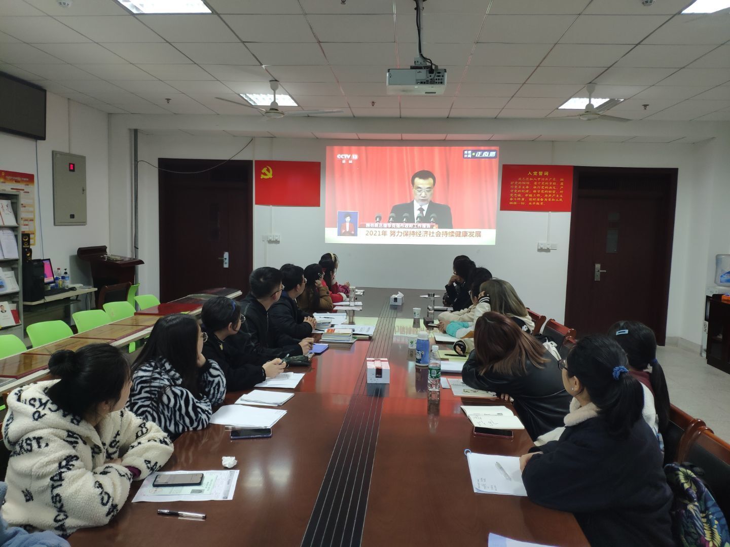 会后,与会党员集体学习了2021年全国“两会”精神,支部全体党员们也分享了学习习近平总书记在全国脱贫攻坚总结表彰大会上讲话的心得体会。通过对我国在脱贫攻坚历程的回顾,以及模范人物事迹的分享,更使大家深刻的认识到中国共产党的宗旨是全心全意为人民服务,也引发了对于自己如何能为国家建设的思考。