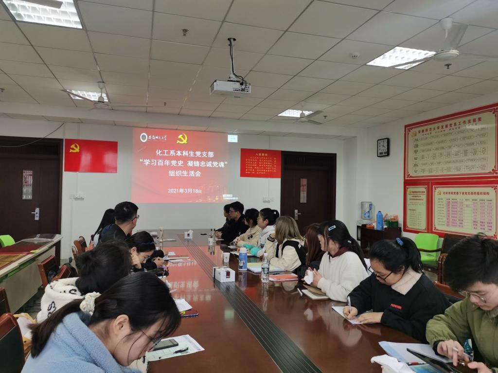 本网讯(化工系本科生党支部 李娜)3月18日下午,化工系本科生党支部在礼勤楼707会议室开展2020年度党支部组织生活会暨民主评议党员,支部全部党员参加了本次会议,本次会议由支部书记程紫丹主持。