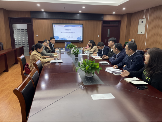 曹右林)4月22日下午,学生工作处副处长、学生工作部副部长项家春,学生管理科科长王亚男,国防教育科科长蒋建伟一行来院调研指导学生工作,学院党委副书记李古州、全体专兼职辅导员参加调研指导会。