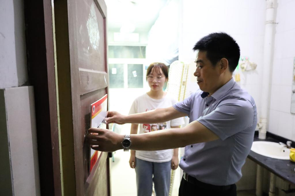 领导班子全体成员及辅导员深入学生宿舍,为本学期新发展党员开展党员示范宿舍挂牌。