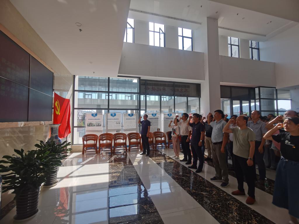 党委在学院二楼大厅举行2021年第二批新党员入党宣誓仪式暨重温入党誓词主题党日活动。学院党委书记汪俊武,党委副书记、院长高峰,党委副书记李古州,党委委员、副院长周双六、王波涛,党委委员崔鹏及各党支部书记、支委、师生党员代表、2021年第二批新发展入党的84名预备党员共同参加仪式,仪式由李古州主持。
