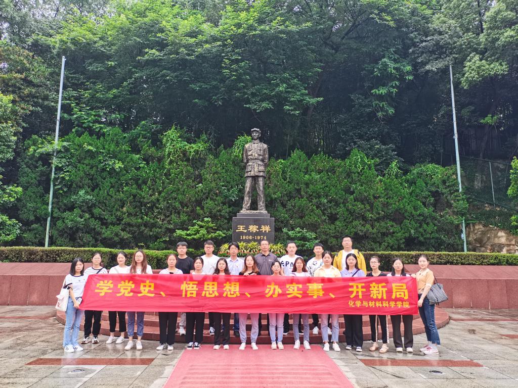 戚梦娟 杨琨)为深入开展党史学习教育,推动党史学习入脑入心,在热烈庆祝中国共产党成立100周年之际,6月26日上午,无机专业研究生党支部与材料及材料物理研究生党支部联合在王稼祥纪念园举行了以“传承红色基因,喜迎建党百年”为主题的党日活动。学院党委书记汪俊武、党委委员崔鹏出席活动,无机专业研究生党支部和材料及材料物理研究生党支部在校党员参加活动。