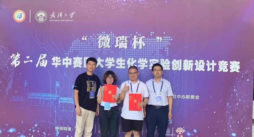 )近日,由中国化学会和高等学校国家级实验教学示范中心主办的2021年“微瑞杯”第二届华中赛区全国大学生化学实验创新设计竞赛在武汉大学落下帷幕。我院队伍成功在69所高校,164支队伍中脱颖而出,获得了赛区二等奖1项,三等奖2项的好成绩。