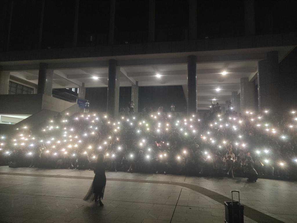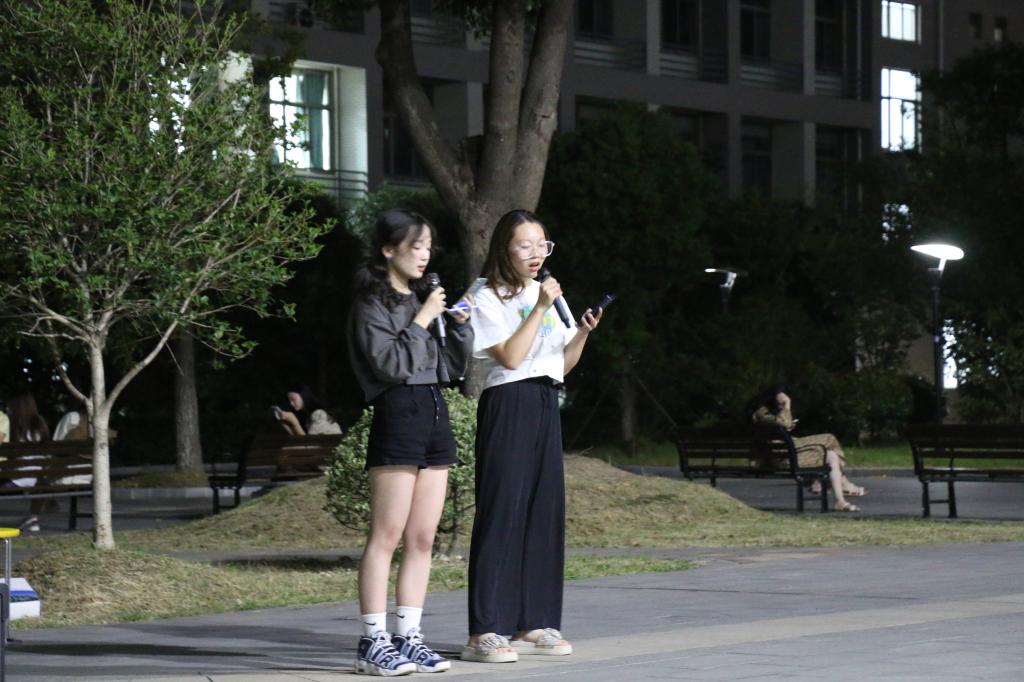 2021级528名新生与辅导员梅冠东老师一起齐聚礼勤楼广场,共同庆祝中秋佳节。