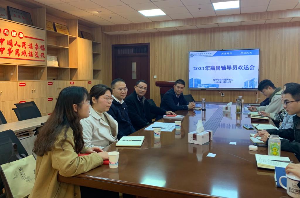 召开2021年离岗辅导员欢送会。学院党委书记汪俊武、党委副书记李古州、学院全体专兼职辅导员共同参加。欢送会由李古州主持。