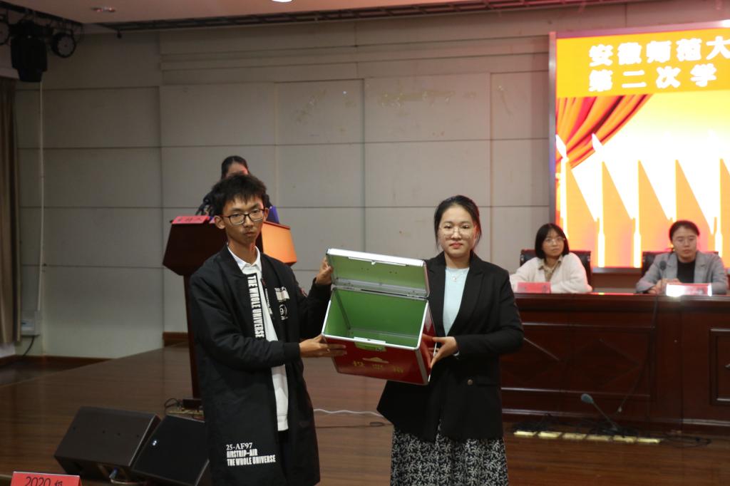 2019级化学师范专业本科生沙凝与2020级物理化学专业研究生邰宇恒分别代表上届学生会和研究生会做了学年工作报告。报告中指出,过去一年,学院学生会(研究生会)不断开拓进取、注重实践,用爱心与责任生动讲述了化材学子值得信赖、勇于担当的青春故事,用激情与汗水浓墨书写了当代化材学子奋发有为、锐意进取的青春答卷。全体学生工作人员牢固树立目标,进一步坚定服务广大同学、做好桥梁纽带的初心。